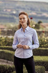 Long sleeve shirt. Tone in tone buttons and taped seams inside. Treated with Easy Care.